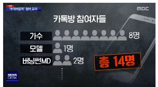 MBC뉴스데스크 보도에 의하면 불법촬영물이 공유된 정준영 단톡방에 있던 멤버는 모두 14명 이라고 합니다. 새멤버로 거론된 K씨는 '단체 메시지방에 참여한건 맞지만, 불버 사진이나 영상물을 공유한적은 없다.'라고 혐의를 부인했다고 합니다. 경찰은 이에 단톡방에 있었던 모두가 수사 대상이라고 발표했습니다. 한편 네티즌들은 K씨가 누군지 새멤버는 누군지 궁금해 하고있다고 합니다.
